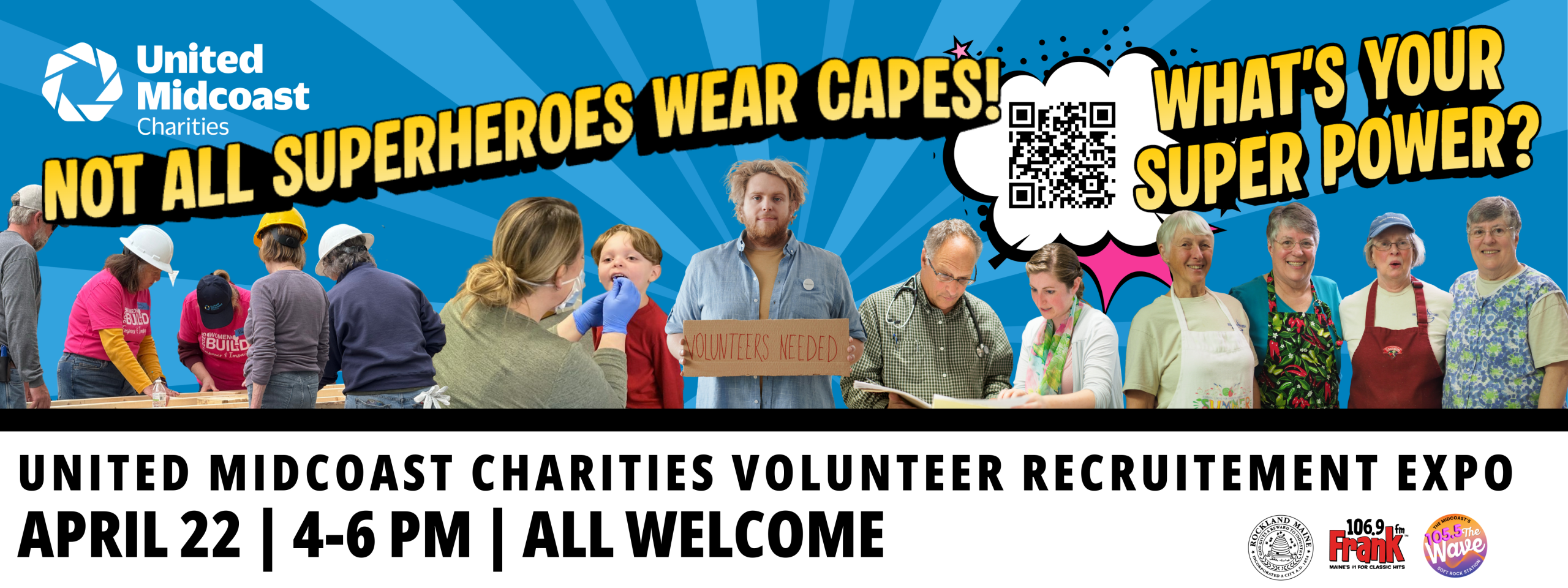 Are you passionate about making a difference or looking for a meaningful way to give back? Join us for the Volunteer Recruitment Expo, hosted by UMC, and sponsored by the City of Rockland, 106.9 Frank FM, and 105.5 The Wave. If you are interested in becoming a sponsor of this community-wide event please reach out to Eileen at UMC at 207-236-2299.